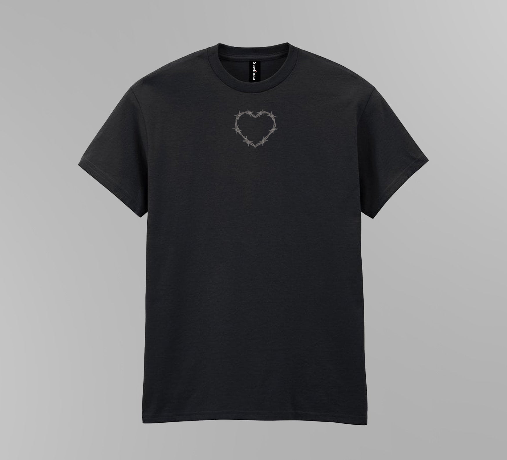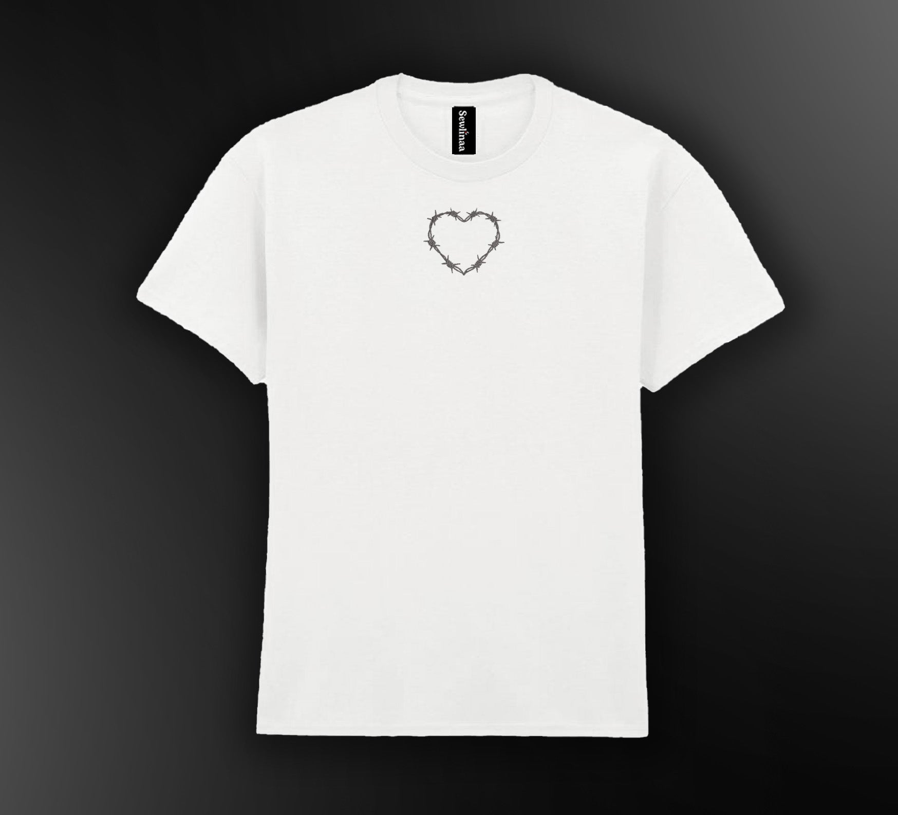 Sewlinaa's barbed wire heart design stitched in silver thread.