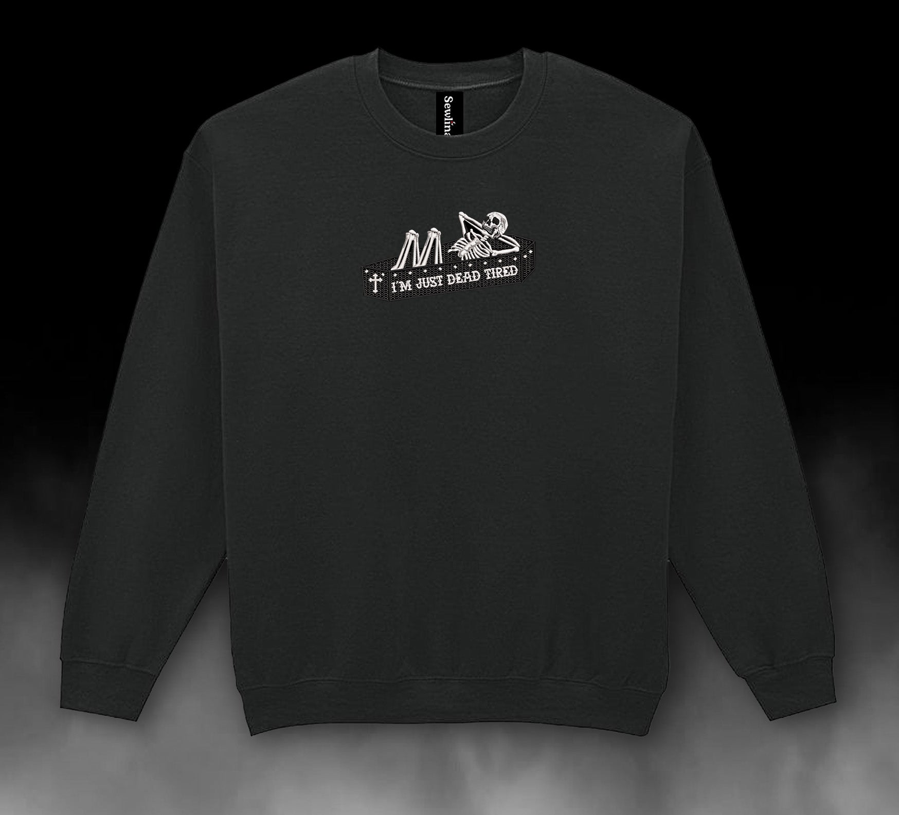 Sewlinaa's 'Dead Tired' Illustration embroidered on Cotton Sweatshirt.