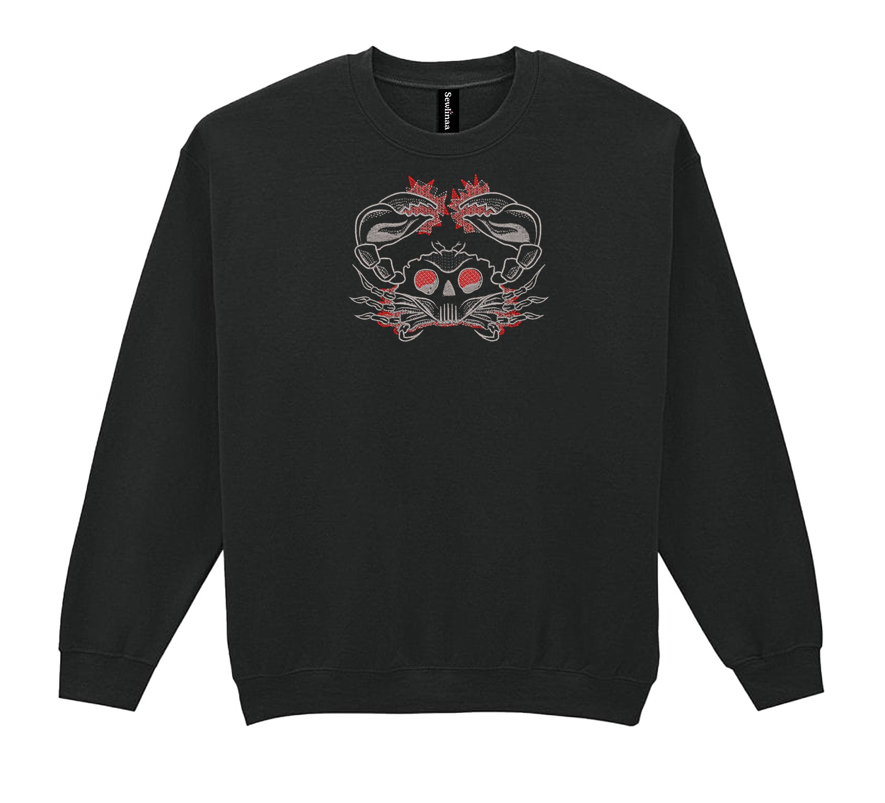 Embroidered on Black sweatshirt in Red & Grey Thread